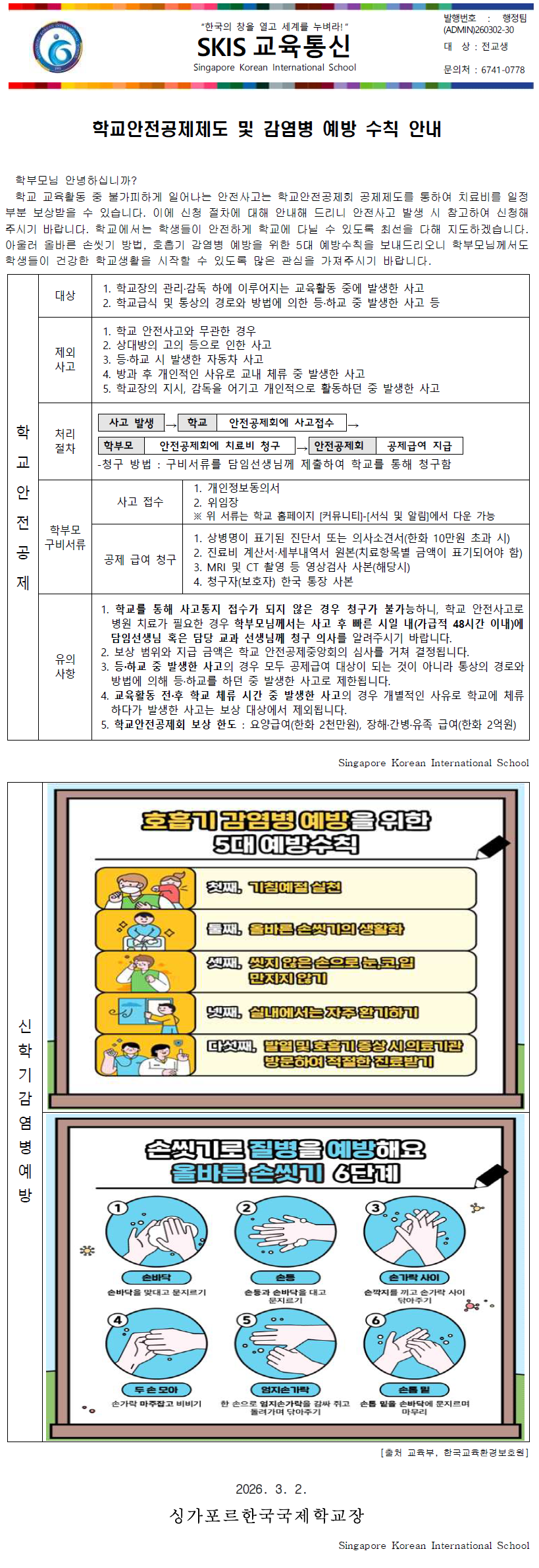 SKIS °¡Á¤Åë½Å¹®) Çб³¾ÈÀü°øÁ¦Á¦µµ ¹× °¨¿°º´ ¿¹¹æ ¼öÄ¢ ¾È³»(2026.3).pdf